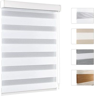 Het gestreepte gordijn is een soort textieldiestof door reepjes van stof en gaas met gelijke breedte wordt geweven, die aan één kant wordt bevestigd en met de schacht bij de overkant gerold om het licht aan te passen. Wanneer het gaas en het gaas overlappen, is de lichte lijn vrij zacht, in zekere mate verminderend het directe licht. Wanneer de koordstof en de koordstof worden gewankeld, wordt het licht volledig geblokkeerd, om het doel definitief te bereiken om het licht te blokkeren. Wanneer het gordijn volledig moet worden geopend, kan het gordijn volledig worden opgerold. De gestreepte zonneblinden combineren de warmte van stof, de eenvoud van rolzonneblinden en de het verduisteren functie van zonneblinden. Het gordijn is gemakkelijk om, met gediversifieerde in de schaduw stellende vormen te werken, en belemmert niet de visie. Het is een ideale keus voor bureau en huisvensterdecoratie.